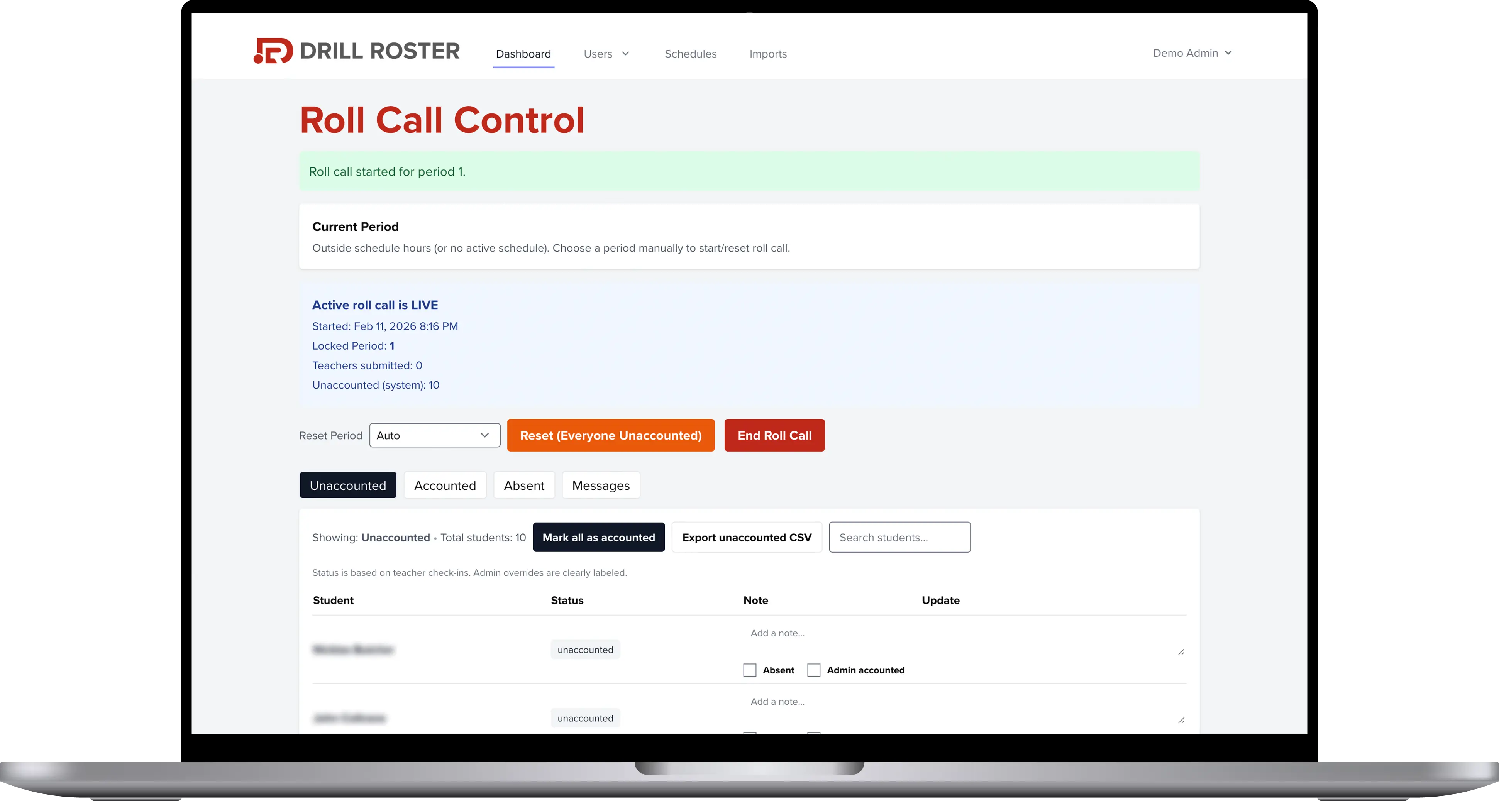 DrillRoster is a K-12 school safety and emergency accountability software platform designed for administrators and teachers.